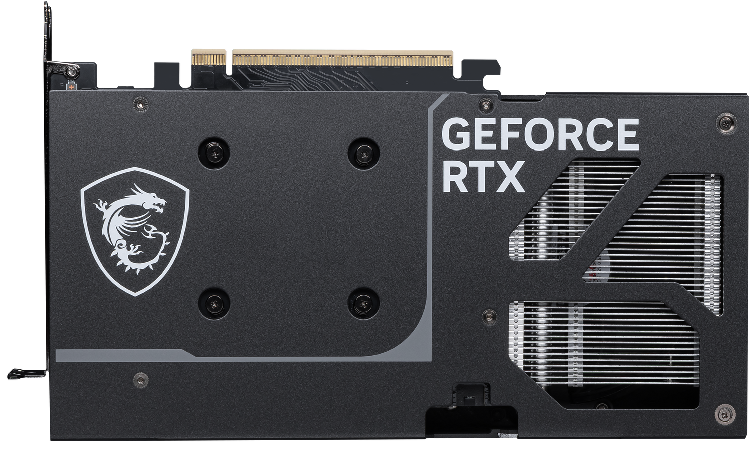 Wytrzymała, metalowa tylna płyta mocująca, nie tylko wzmacnia mechanicznie kartę, ale również, dzięki otworom wentylacyjnym zwiększa szybkość odprowadzania ciepła.