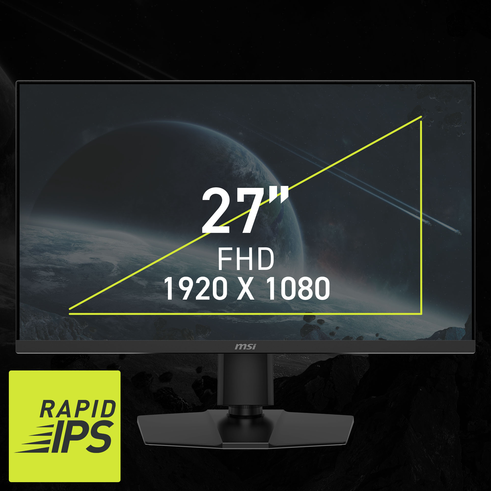 Monitor wyposażony jest w 27-calowy panel Rapid IPS o rozdzielczości Full HD (1920 x 1080), który zapewnia szerokie, 178-stopniowe kąty widzenia przy minimalnych przekłamaniach kolorów, nawet podczas patrzenia z boku.
