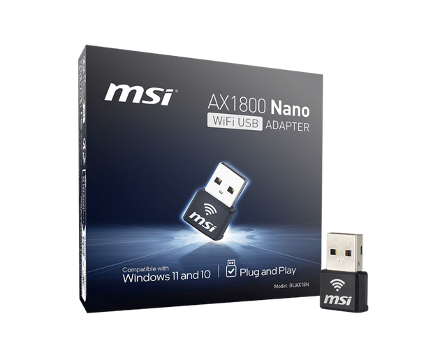 MSI AX1800 Nano WiFi USB Adapter, to adapter który pozwala na zwiększenie prędkość pracy komputera lub laptopa w sieci Wi-Fi do 1201 Mbit/s w paśmie 5 GHz i do 574 Mbit/s w paśmie 2,4 GHz. Dzięki zgodności ze standardem WiFi 6, opóźnienia i przeciążenia mogą być w istotny sposób zredukowane w środowiskach o dużym zagęszczeniu ruchu. Pomagają w tym technologie OFDMA i MU-MIMO, które dostosowane są streamingu i potrzeb związanych z zaawansowanym gamingiem.