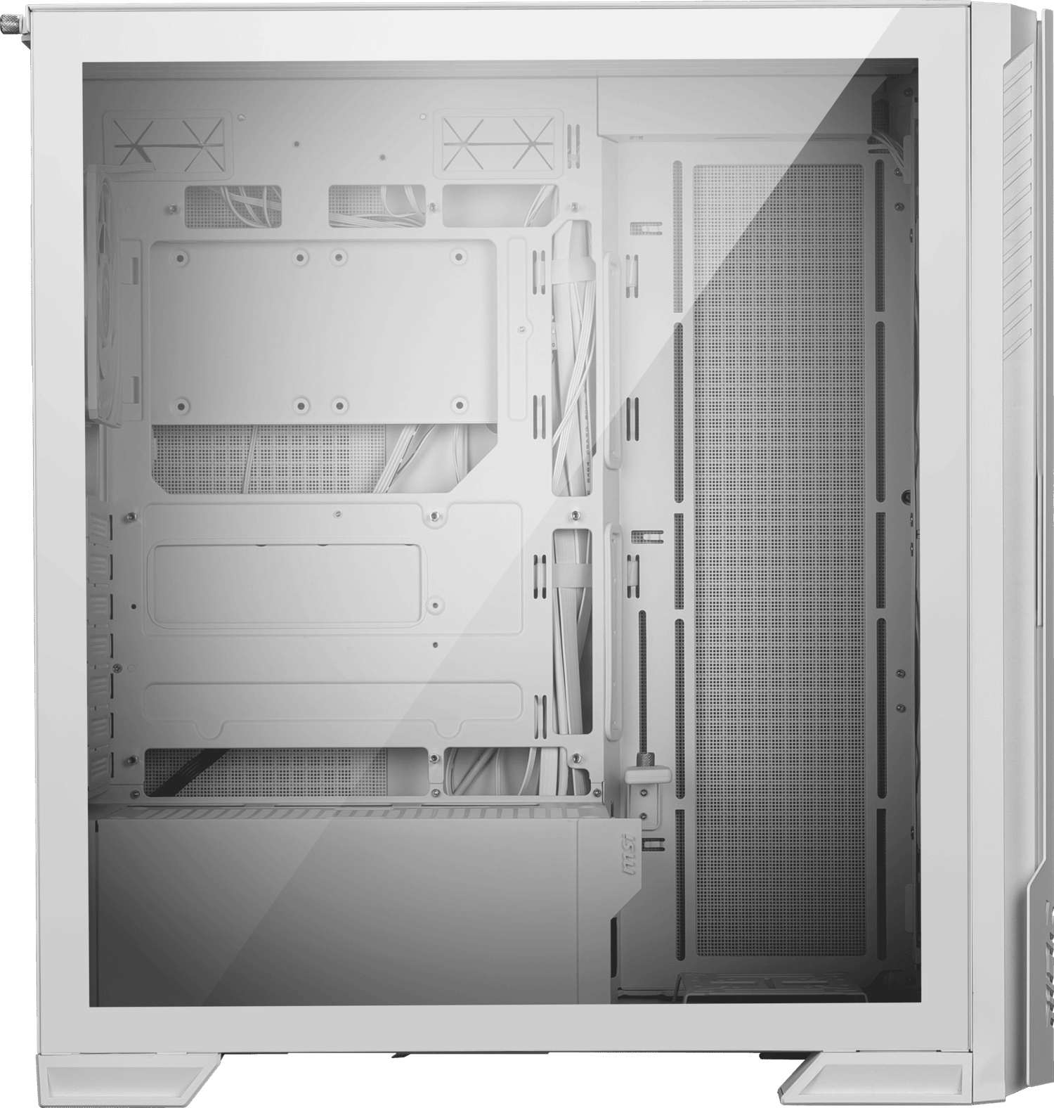 Zaprojektowane z myślą o maksymalnej wydajności chłodzenia, obudowy z serii MPG VELOX 300R AIRFLOW PZ oferują rozmieszczone z pięciu stron otwory wentylacyjne oraz trzy zainstalowane fabrycznie wentylatory z wirnikiem z dwoma warstwami łopatek — dwa z przodu i jeden z tyłu — zapewniając tym samym optymalny przepływ powietrza i szybkie odprowadzanie ciepła.