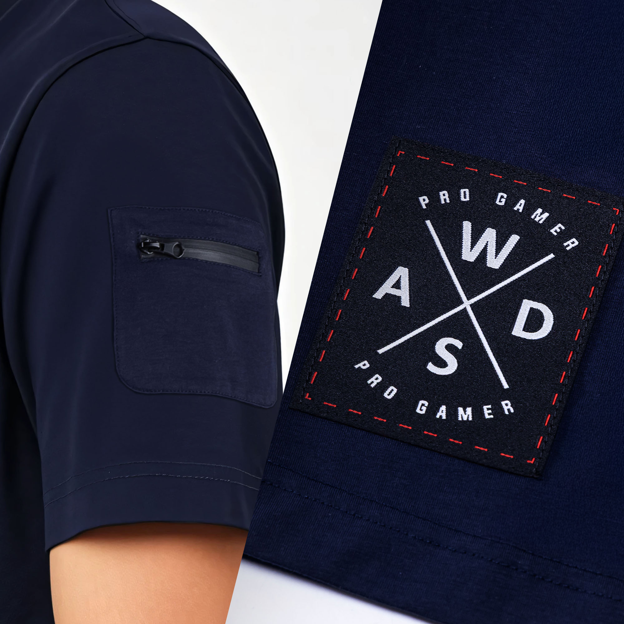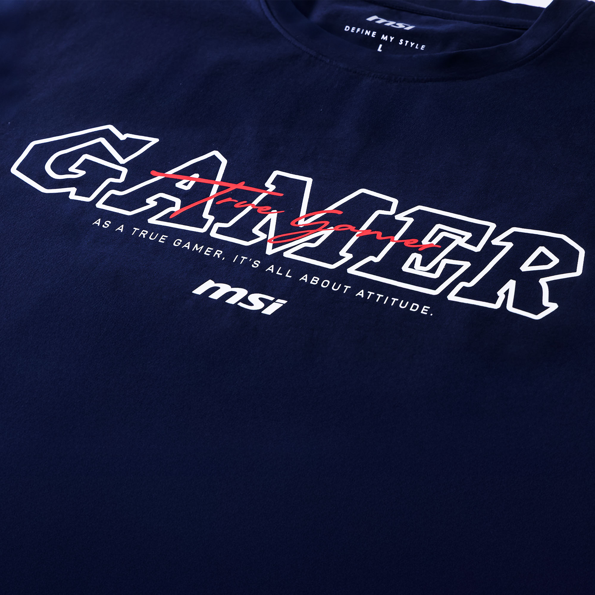 Klasyczny granat łączy się z wyciętym nadrukiem „GAMER” w odręcznym stylu, tworząc połączenie e-sportowego charakteru z indywidualnym designem.